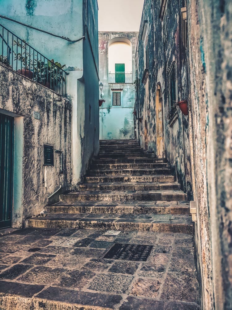 Au cœur de Specchia, la place rejoint de nombreuses ruelles et d’escaliers offrant une vue sur la compagne environnante des Pouilles. Mais surtout en fin de journée, la magnifique cité des Pouilles est baignée d’une lumière incroyable. Explorer Specchia dans les environs de Lecce, c’est découvrir ses églises et palais cachés. L’église de Fransiscani Neri que nous n’avons pu visiter, vous vous en doutez, regroupe une fresque byzantine.