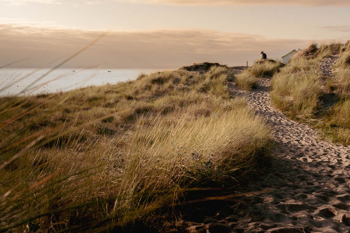 Au cœur de l’été, le sentier sableux est bordé de fleurs. Et puis la mer n’est jamais très loin : autant vous dire que nous sommes les plus heureux du monde ! En chemin, nous trouvons un curieux alignement de pierres dressées vers le ciel, évoquant la forme d’un drakkar. C’est le monument Lechanteur, une ode à la langue normande qui ne laissera personne indifférent. Au loin, je l’aperçois avec son chapeau rouge : le phare d’Agon-Coutainville. Le sémaphore domine le havre de Regnéville et les bateaux échoués attendant que la mer vienne les chercher. Sur la pointe d’Agon, la beauté du paysage nous saute aux yeux, elle est partout. Elle semble intacte et préservée. Ici même, nous avons le sentiment de toucher le bout du monde.