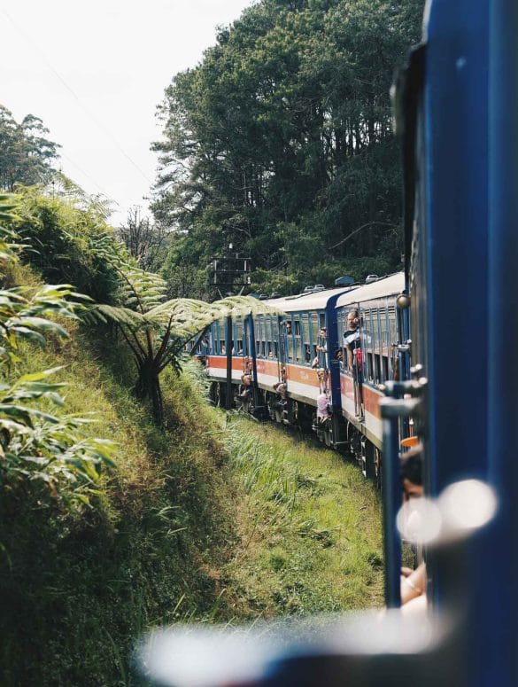 Pour rejoindre Bandarawela, nous embarquons à bord d’un train à la gare de Nanu Oy. Sur le quai, une foule compacte se presse pour vivre l’un des plus beaux trajets en train du Sri Lanka. Le train bleu circule à petite vitesse à travers les montagnes verdoyantes et les petits villages reculés du du Sri Lanka. Même si ce train est follement touristique, l’expérience en vaut vraiment la peine. Entre les rizières et les plantations de thé, notre cœur balance, mais une chose est sûre : la vue panoramique est à couper le souffle ! Pour nos 2 semaines au Sri Lanka, nous avons cette impression délicieuse de vivre un voyage dans le voyage. On ne pouvait rêver mieux.